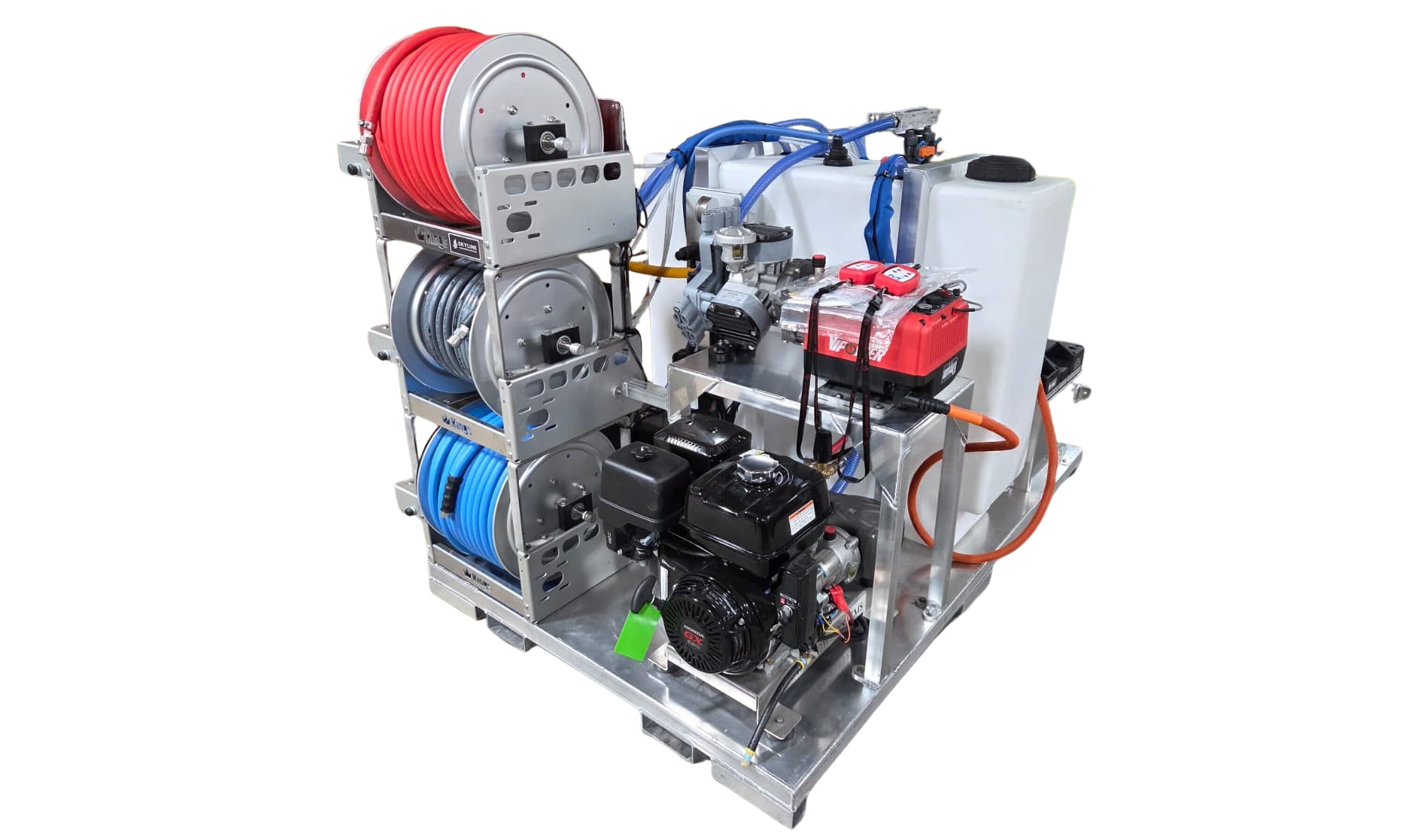 Built on a heavy-duty TIG welded aluminum skid with full frame design and integrated fork pockets, the system is engineered for durability, stability and easy handling.
