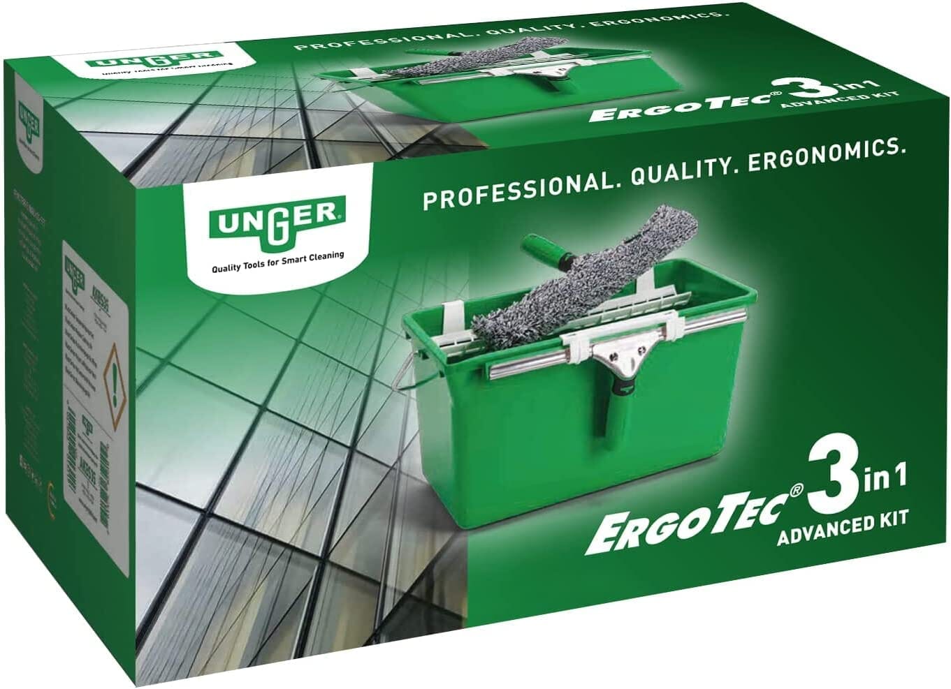 This Unger ErgoTec set gives you a complete setup with bucket, washer, and squeegee for efficient, streak-free results.