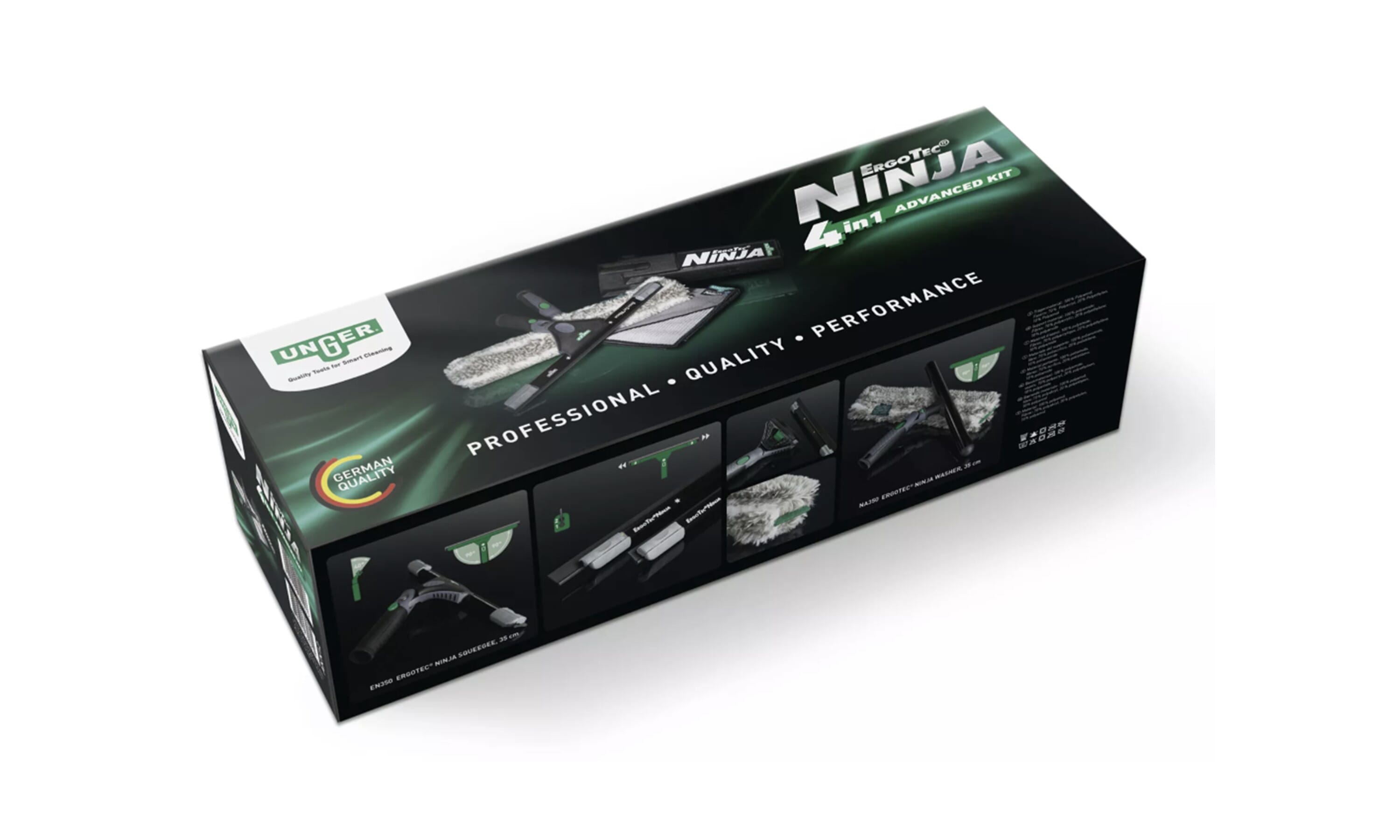The Unger ErgoTec Ninja set gives you top-quality equipment for professional window cleaning, all in one package.